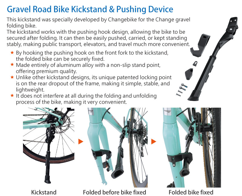 This 700C folding gravel bike can be pushed, carried, or stood up when folded, making it convenient to transport. The frame features a diamond triangle structure design, with no cuts or perforations, ensuring strength and stability. The standard gravel bike geometry is ergonomically designed and offers multiple size options, suitable for riders of different heights. It is the only folding frame that has passed the ISO 4210 road bike frame safety test, providing extra security for your rides. The folding process is quick and simple, with no tools required, so you’re always ready to ride.