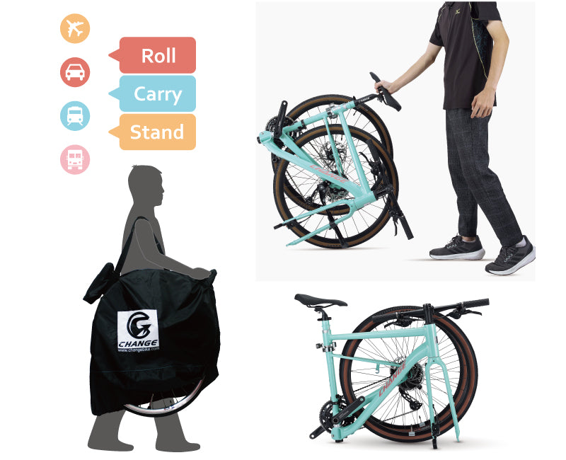 Change lightweight folding bike is specifically made for long distance travel, including by air travel, in an RV, yacht as well as any other form of transportation that involves stowing a bike into any kind of luggage compartment, in addition to also being conveniently transportable for any short distance commuting. The advantage of a 27.5" wheel / 700C touring bike is it is easy to repair and find replacement parts no matter where you are in the world.